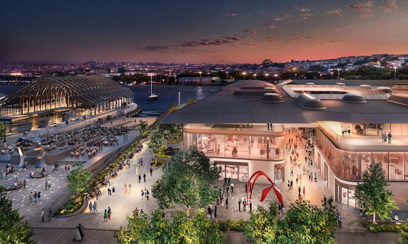 Foster + Partners, İstanbul’un tarihi Haliç kıyısında yer alan ve kentsel dönüşüm ekseninde hayata geçirilen yeni bir Golden Horn Plaza tasarımını tanıttı. Proje, hali hazırda 1,6 kilometrelik sahil şeridini aktif, kamusal ve kültürel bir alan haline getirmeyi amaçlıyor. Dünya çapında lüks markalara ev sahipliği yapmayı hedefleyen plaza, yürünebilir yapıda, birbirine bağlantılı ağaç gölgeli pavyonlardan meydana gelmekte. Gölgelikli yaya yolları ve üst katlarda teras alanlarıyla çevresiyle görsel ilişki kuran mekanlar sunan proje, Haliç manzaralı çıkma restoranı ile de öne çıkıyor.