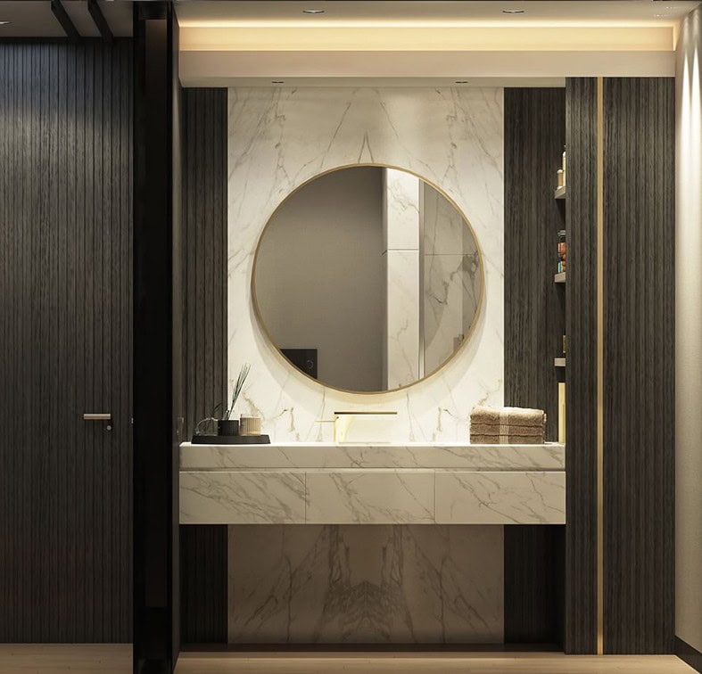 Zemin, duvar ve tezgâhları bir bütün olarak tek malzeme etkisi ile tasarlanmış banyo alanlarının sofistike bir görünüm yaratacağını belirten iç mimar, yoğunluktan uzak, sade ve rahatlatıcı SPA etkisi sunan banyo tasarımlarında, mermerin sıcak gri ve koyu renklerin modern yorumlanışı ile karşımıza çıkacağını iletiyor. Bu anlayış ile tasarlanan banyolarda, beton görünümlü malzemeler ve “Terazzo”lar da trendler arasında yer alacak.