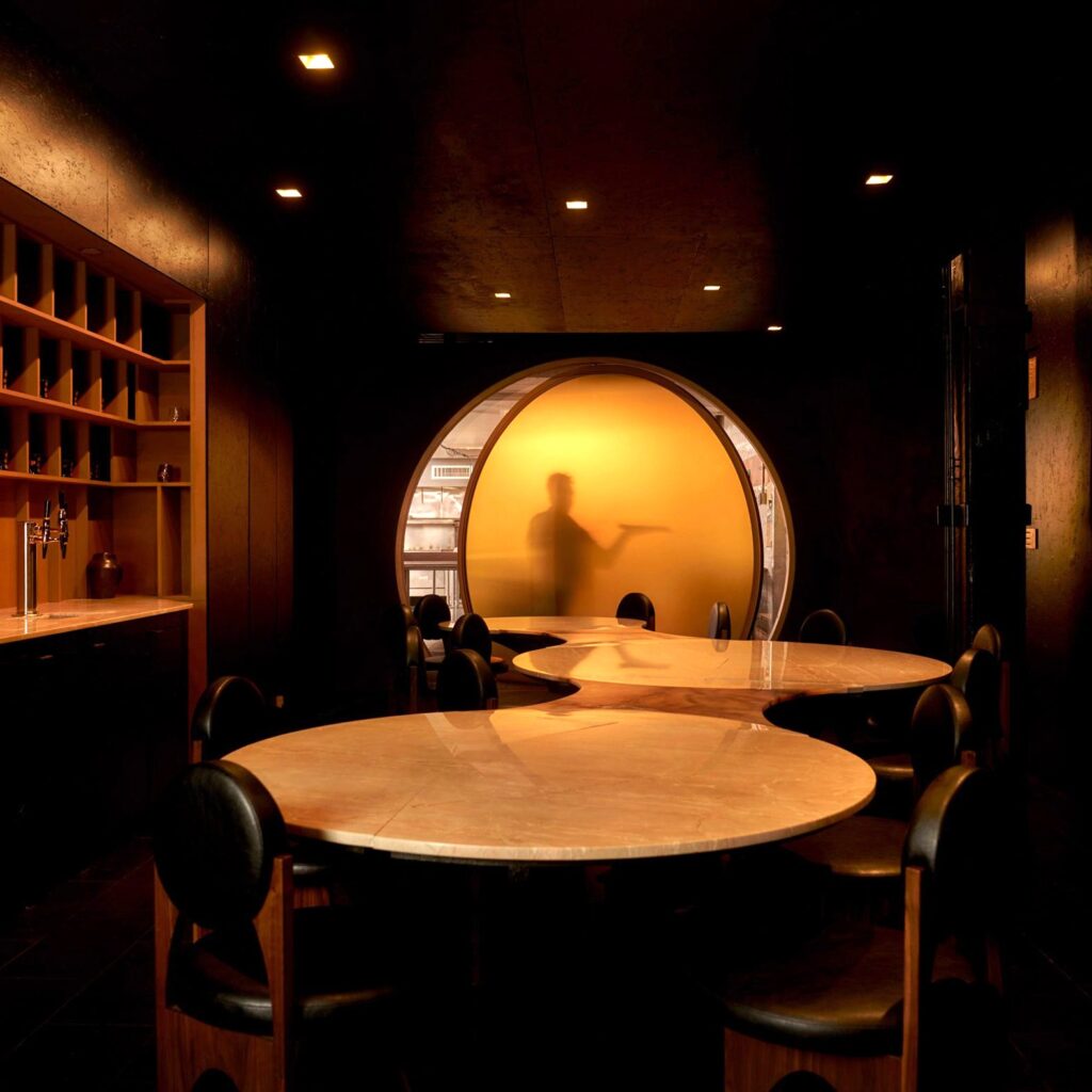 Mariam Issoufou Architects imzalı Manhattan restoranı Gourmega, lineer planı terk ederek dairesel oturma düzeni ve dönüşebilen mekân kurgusuyla restoran tipolojisini yeniden tartışmaya açıyor.