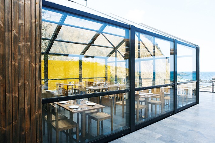 Güneş Enerjisi İle Çalışan Ve Raylar Üzerinde Hareket Ederek Mekanı Dışarıya, Denize Doğru Genişleten Cam Yapı