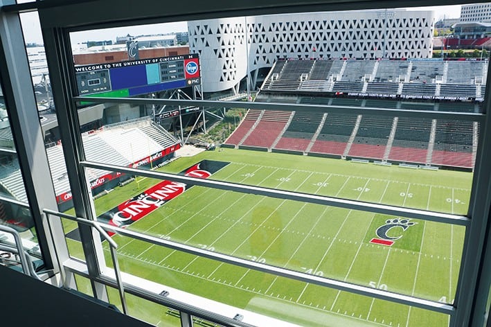 Panora-View sistemleri tasarım özelliklerinden dolayı Libart dikey hareketli ısı cam sistemler ile özellikle Amerika’da çok ilgi görmektedir. 2016 yılının 3. Çeyreğinde tamamlanan Nippert Stadyumu’nda basın odalarının önlerinde dikey hareketli cam sistemleri kullanılmıştır. Kullanılan Libart sistemleri ile basın odaları alan kaybetmeden tüm cephesini açarak basın kuruluşlarının temsilcilerine daha etkili bir atmosfer sağlamıştır.