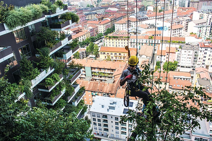 Milano’daki dikey orman projesinde 800’ü ağaç olmak üzere 21 bin bitki mevcut. 1500 farklı bitki türü kullanılan projede 30’dan fazla ağaç türü var.