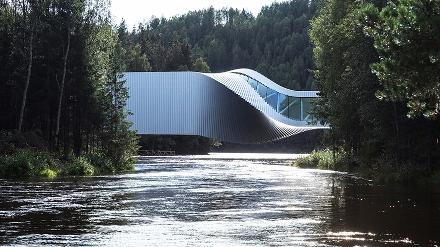 BIG, Norveç’teki Kistefos heykel parkının ortasından geçen nehrin üzerine inşa ettiği Twist sanat galerisini tamamladı. Nehrin üzerinde köprü görevi gören galeri bir iskambil destesi gibi kıvrılan tasarımıyla dikkat çekiyor.