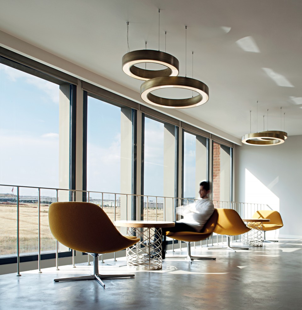 Yemekhane, lounge, toplantı odası ve terası içeren sosyal alanlar olarak ele alınan üçüncü katta ayrıca, cephenin geri çekilmesi ile manzaraya hâkim, gökyüzüne açılan, yarı açık bir teras oluşturulmuş. Binanın genelinde ise tüm hacimlerin gün ışığı ve manzaradan en verimli şekilde yararlanması amaçlanmış. Farklı birimler arasında istenen ayrışma mümkün olduğunca geçirgen biçimde çözümlenirken, yerine özel tasarlanan mobilyalarla iç mekânda süreklilik ve ferahlık algısı yaratılmış.