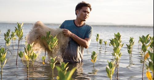 Filipin’lerde 600 adadan oluşan Davao bölgesinde balıkçılıkla geçinen ama artık çok yoksullaşmış bir bölge var. Interface öncülüğünde Londra merkezli bir zooloji kurumu ve iplik üreticisi bir firmayla beraber halkı orada organize edip, yerel bir fon kurup, atılmış balık ağlarının denizlerden ve kumsallardan temizlenmesi, tekrar istiflenip iplik üreticisi Aquafil’e gönderilmesi tekrar işlenip sıfır iplik, geri dönüştürülmüş iplik olarak Interface tarafından kullanılması sağlandı. Dolayısıyla denizi ve sahilleri temizlemiş olduk. Orada yaşayan halk bir miktar para kazanmış oldu ve bununla okullarını, dispanserlerini ve hastanelerini renove ettiler. Biz de bu bağlamda, bütün her şey denizden geldiği için, denizden esinlenerek tasarlanan yepyeni bir seri oluşturduk adını Net Effect koyduk. Bunun arkasında teknoloji ve tecrübenin yanı sıra bu işe duyulan bir adanmışlık duygusu da var. Biraz da arkasında sosyal sorumluluk projesi olan, denizin esintisini iç mekanlara taşıdığımız yeni bir ürün gamı.
