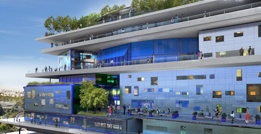 Dikey mahalle iki ana programatik alan etrafında yer alıyor: teknoloji, medya yaratıcı işletmeler için çalışma alanları ve öğrenciler için ortak konaklama alanları. Proje ayrıca yemek mekânları, mağazalar ve spor tesisler gibi çeşitli olanaklara da sahip. Ofis iş birliğini ve sosyal sermayeyi daha da artırmak için bu kampüste bir okul veya üniversite gibi bir eğitim alanı da dahil etmeyi amaçlıyor.