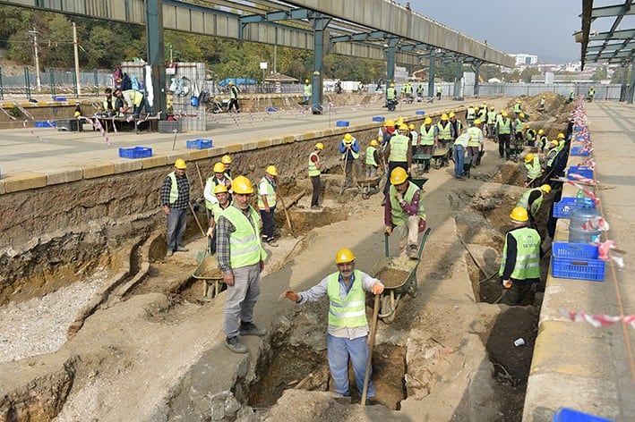 Restorasyon çalışmalarının sürdüğü Haydarpaşa Garı çevresindeki arkeolojik kazılarda 2 bin yıllık olduğu düşünülen duvar ile üzerinde koku kolyesi olan ve bin yaşında olduğu düşünülen bir iskelet bulundu. Arkeolojik kazı alanını ziyaret eden Kadıköy Belediye Başkanı Aykurt Nuhoğlu, “Haydarpaşa Kadıköy için, Türkiye için çok önemli bir alan, ülkemizin ortak değeridir. Bu önemli alanı koruyarak, kimliğine yakışır bir biçimde gelecek kuşaklara aktarmak gerekiyor.” dedi.