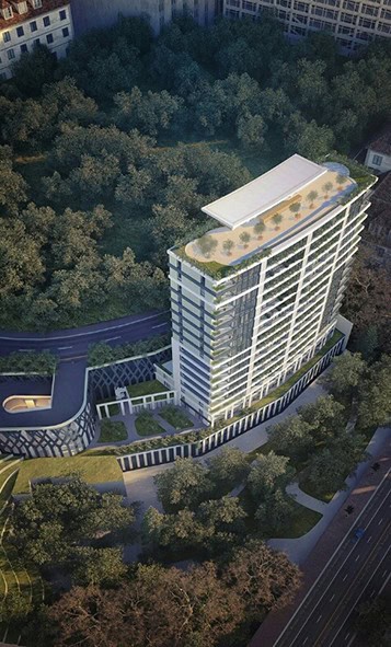 Tüm cephede bütün boşluklar yere kadar tasarlanarak, olabildiğince her noktadan manzaranın ve bol gün ışığının içeri girmesi sağlanmış. Binanın dar köşesine komşu olan park da değerli bir manzara açısı oluşturuyor.