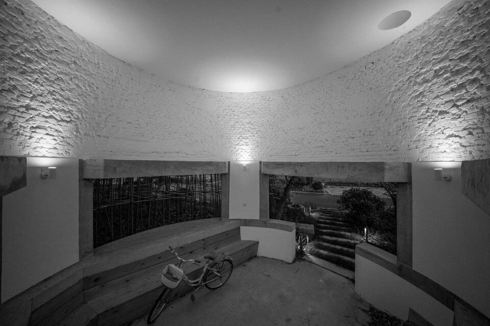 Orijinal pompa odasının iç alanı nispeten kapalıdır ve cephede ışıklar ve havalandırma için sadece iki küçük pencere bulunur. Cepheye yerleştirilen uzun pencereler sayesinde iç mekan ile dış mekan arasındaki sınırlar kalkarken  görüş alanı ormanın derinliklerine kadar uzanabilmektedir.