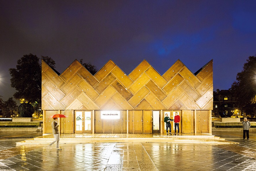 Mimarlık stüdyosu Encore Heureux’un Paris Belediye Binasının dışına inşa ettiği pavilion; 30 Kasım – 11 Aralık 2015 tarihleri arasında kentte düzenlenen Birleşmiş Milletler İklim Değişikliği Konferansı ile eşzamanlı olarak kurulmuş. Bu 70 metrekarelik bina, sürdürülebilir mimari için bir model olarak tasarlanmış.