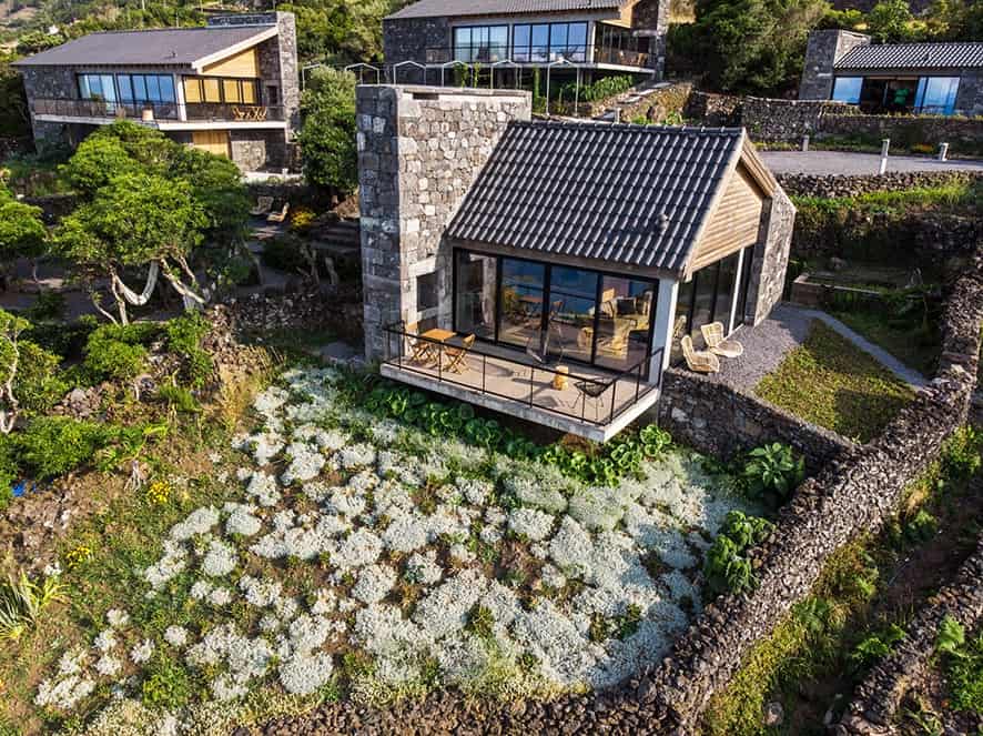 Dik eğimin, terasların ve kalıntıların getirdiği boyutsal özelliklerden dolayı konaklama ünitelerin tamamı kendi özel alanlarına sahip. Bunun yanı sıra hepsi yeşil bir alanla çevrili ve panoramik deniz manzarasına sahip.