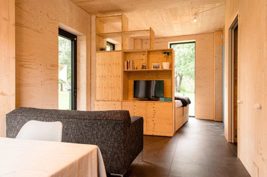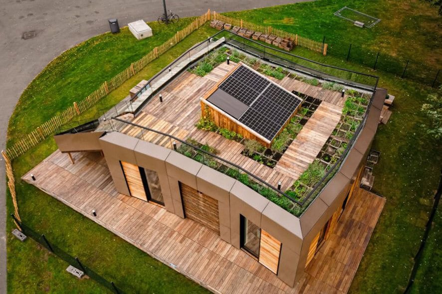 Ripple evi, esas olarak yeniden tasarlanmış ahşap kullanılarak inşa edilmiş. Güneş enerjisinden yararlanmak için ahşabın tonuna uygun renkli güneş panelleri kullanılmış. Sahaya bağlı olarak, güneş ışığını en iyi şekilde yakalamak için güneş panelleri farklı şekilde hareket ettirilebiliyor. Güneş enerjisi dış duvarlara yerleştirilen fotovaltaik paneller ile sağlanırken, çatı kentsel tarım için boş bırakılmış ve bölgenin biyolojik çeşitliliğini desteklemek için bir mikro iklim oluşturmak için kullanılıyor.