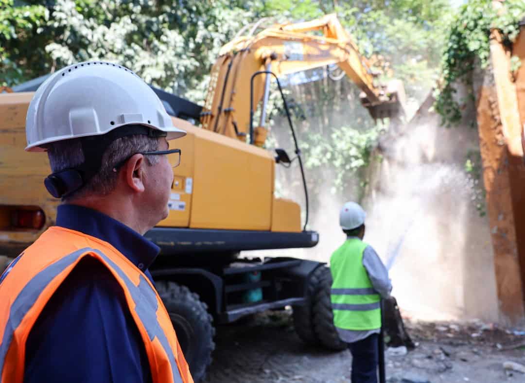Başkan Deniz Köken de yıkım yapılacak alanda çalışmaları inceledi.