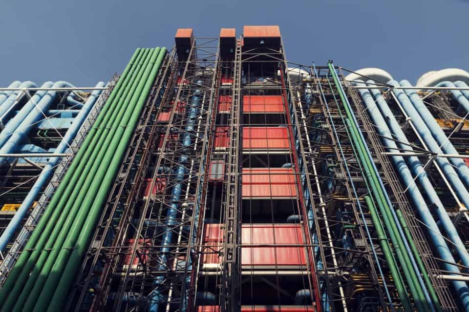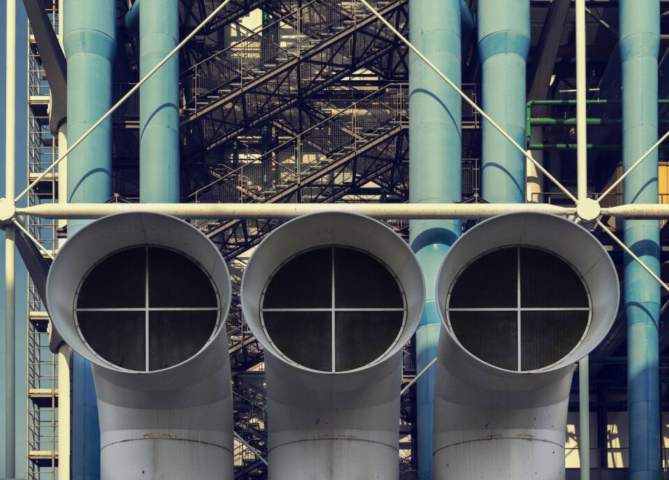Bir zamanlar, “mimari bir korku” olarak nitelendirilen Pompidou Merkezi , mimari ifadenin ve yenilikçiliğin ikonik bir örneği haline gelmiş,  Gallardo’nun, Renzo Piano / Richard Rodgers tasarımının fotoğrafları, yapının bütünlüğü içinde göz ardı edilmeksizin, binanın kesişen çizgilerinin geometrik düzenini ve rasyonalitesini bir ayrıntı düzeyinde ele geçiriyor.