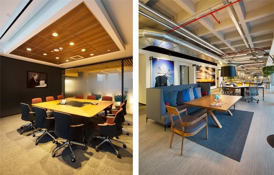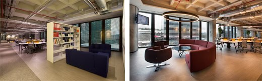 Yapının iç kurgusu; kurumun yaklaşımı ile örtüşen ‘Açık İş’ temalı Koleksiyon tasarımlarıyla yapılmış. Esnek bölgeler yaratmak adına; masa ve sandalyeden oluşan alıştığımız çalışma istasyonları yanında kanepe, koltuk ve sehpalardan oluşan alanlar da tercih edilmiş. Bu esnek ve renkli mekanlarla birlikte iç yapıda havalandırma detaylarının açık bırakılması gibi endüstriyel referanslar da projeyi ilgili çekici kılıyor.
