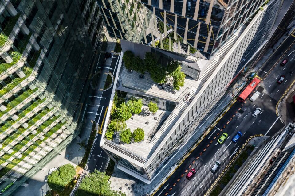 Kule, her açıdan yeni bir yüz ortaya koyuyor ve kentin kent dokusunda farklı bir şekilde birleşiyor. Düşük podyum, bitişik yapılara benzer şekilde ölçeklenirken, Lau Pa Sat.’ın açılı çatı formu terakota ile bağlamsal bir ilişki oluşturuyor. Bu işletmenin çatısındaki yeşil açıklığa, Singapur’un 2014 Yılı Peyzaj Değiştirme Politikası nedeniyle halka açık olarak erişilebilmektedir.