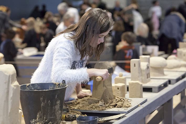 Programa katılan çocukları ilk olarak, Dale Murdock’ın özel olarak bu program için tasarladığı, kumdan yapılmış devasa bir mimari yapı karşılıyor. “Dünya Kumdan Kale Şampiyonu” unvanını birçok kez kazanan sanatçının farklı formlarda, dokularda ve büyüklüklerde kum yapıları bir araya getirerek oluşturduğu mimariyi inceleyerek programa başlanıyor.
