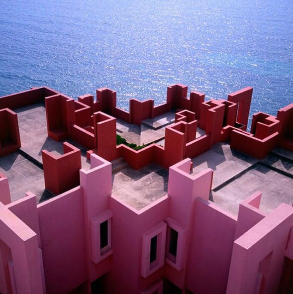 La Muralla Roja (Kırmızı Duvar), 1968 yılında tamamlanmış bir konut projesi. İspanya’nın Calpe şehrinde bulunan yapı, Akdeniz kıyısı Arap mimarlığına yaptığı çarpıcı referanslarla oldukça dikkat çeken bir proje. Bu akım, Akdeniz geleneğinden etkilenen Arap mimarla ortaya çıkmış. Yapı, görsel olarak da renkleri ve karmaşık formuyla bir hayli etkileyici. 1968 yılından bugüne eşsiz tarzıyla ilginç bir mekan sunuyor. Ricardo Bofill, yaklaşımıyla ölümsüz bir gerçek dışılık katıyor yapıya.