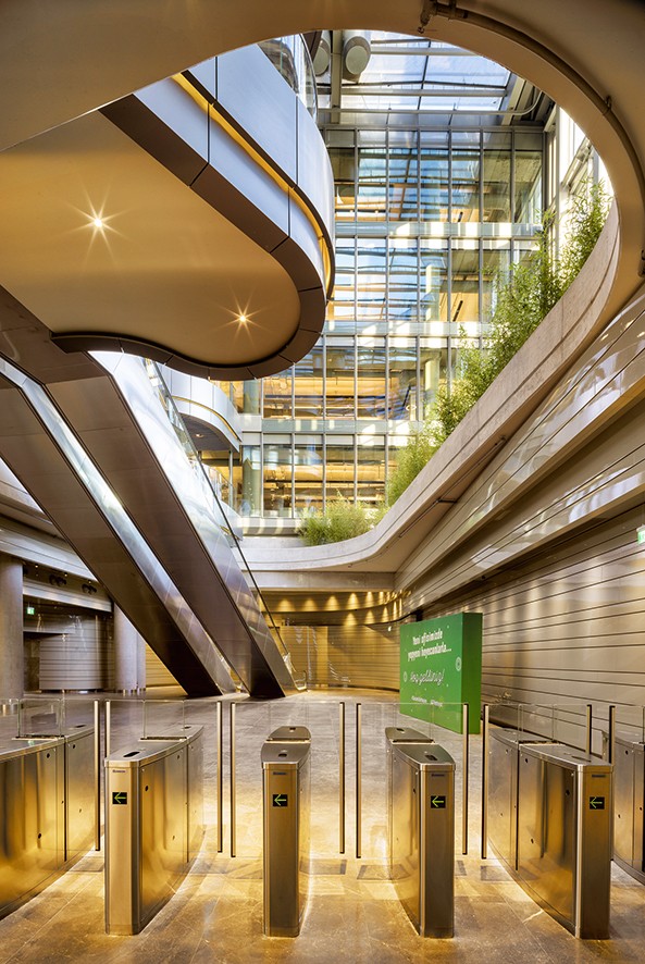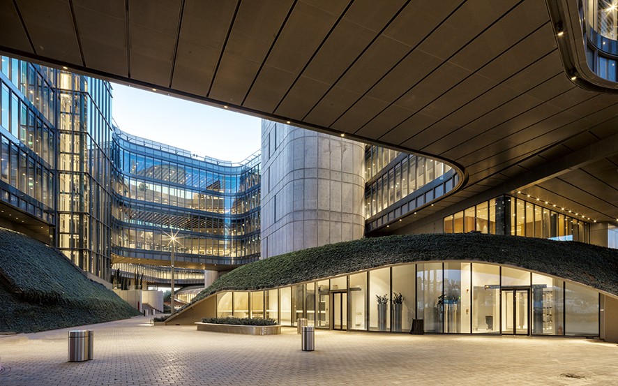 Sahanın etrafındaki doğal topografyadan ilham alan ve civardaki dağınık kentsel dokuyla tam bir zıtlık yaratmak isteyen, yapay tepeler üzerinde yükselen projenin bünyesinde 200 ve 600 kişilik konferans salonları, eğitim toplantı alanları, kafeler, köprüler üzerine inşa edilen holler, data merkezi ve daha bir dizi fonksiyonel alan mevcut.