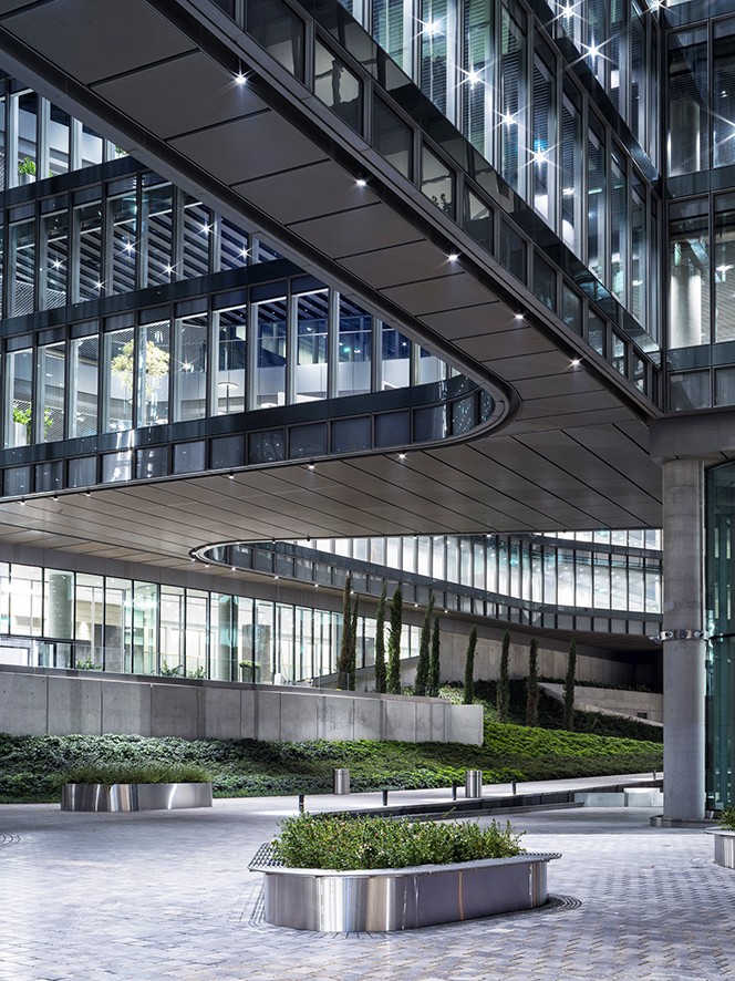 Çalışma alanları için en önemli kriterlerden birinin esneklik ve gün ışığını en üst seviyeye çıkarmak olduğu düşünülerek, ofis alanlarına erişim bir dizi yükseltilmiş açık avlu ile sağlanmış. Binayı kullananlar bu açık avlularda dinlenip sosyalleşme olanağı bulabiliyor. Ayrıca hollerin köprüler üzerine yerleştirilmesi de şaşırtıcı güzellikte manzaraları görmeye olanak tanıyor.