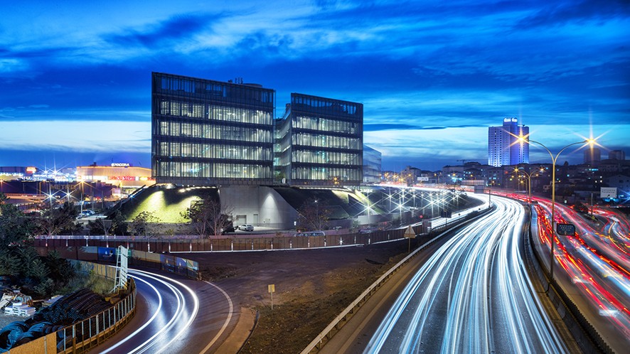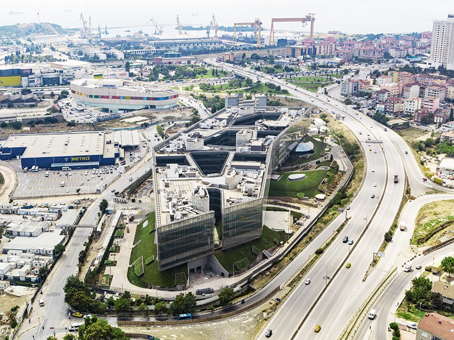 İstanbul’un büyük karayollarından D-100, TEM arasında yer alan ve Sabiha Gökçen Havalimanı’nın yakınında inşa edilen proje, eski bir endüstriyel kimyasal fabrika arazisini Garanti Bank BBVA için bir teknoloji kampüsüne dönüştürüyor.