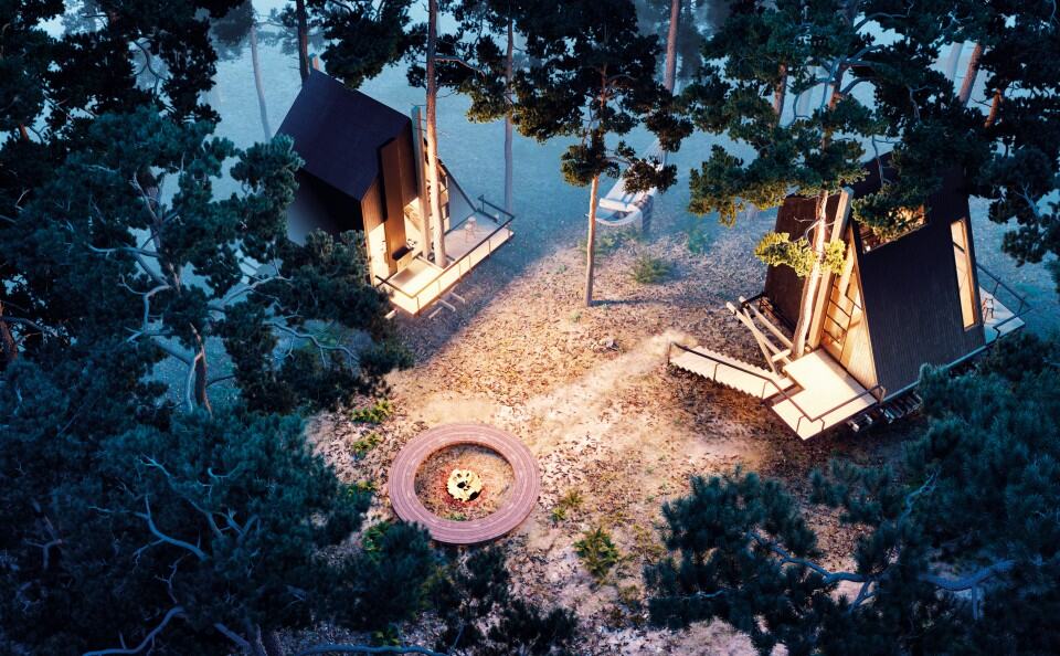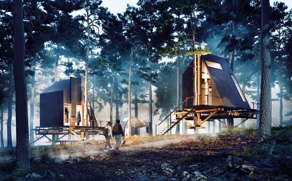 Konaklama birimlerinin ağaçlara tutunarak topografyadan bağımsız hareket etmesi temel prensip olarak belirlendi. Bu sayede birimler yağmur ve kar gibi dış etkilerden korunaklı hale gelirken; mevcut ağaçların gövde çapları ve gövde mesafeleri üzerinde yapılan çalışma neticesinde uygun