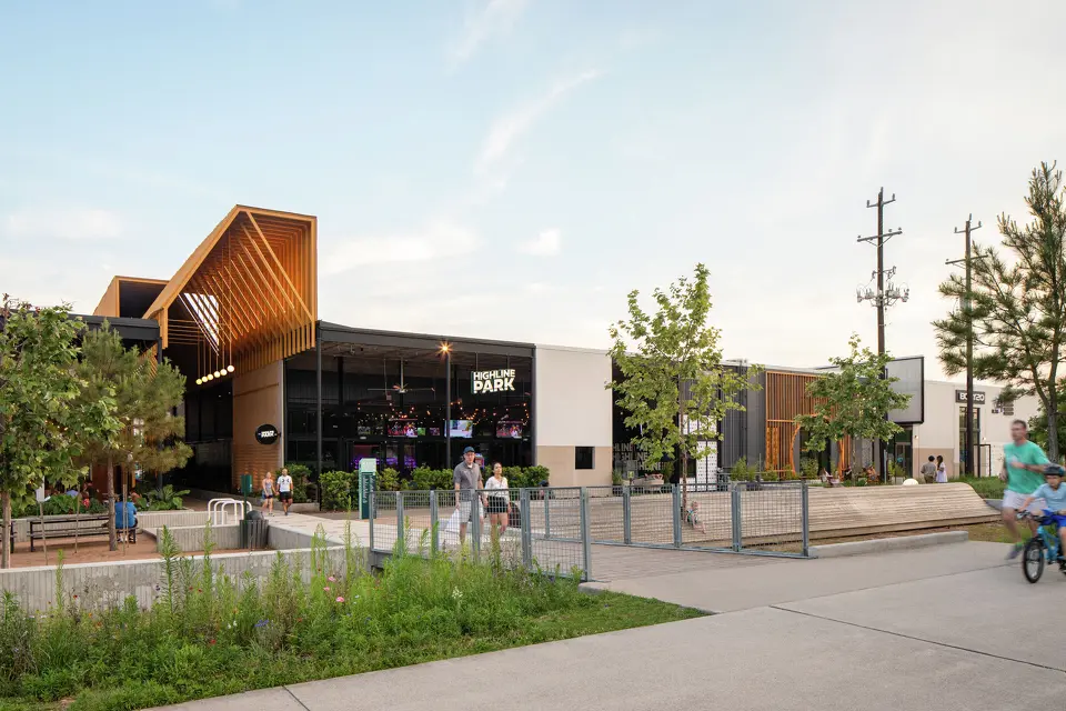 Ayrıca proje, doğrudan bisiklet ve yürüyüş yollarına bağlanarak kentsel hareketlilikle güçlü bir ilişki kurar. Özellikle “Heights Hike and Bike Trail” ile kurulan bağlantı, projeyi sadece bir ticaret alanı olmaktan çıkarıp günlük yaşamın bir parçası haline getirir.