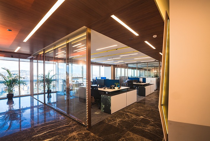 Köşe odaların üst düzey yöneticilere ayrıldığı planlarda ortak kullanıma açık toplantı odaları yaratılarak ofis içindeki çalışanların ve dışarıdan gelen misafirlerin toplantılarını bu mekanlarda yapmasına imkan sağlanmış.