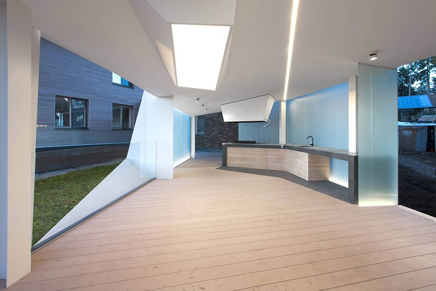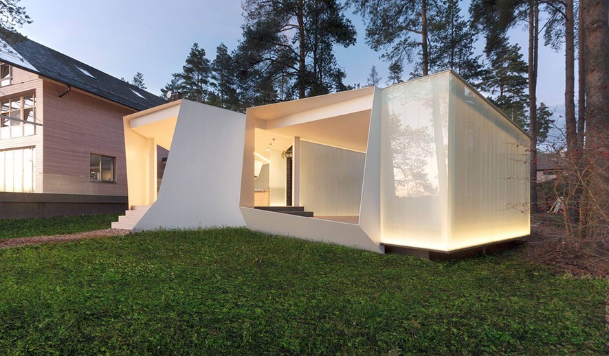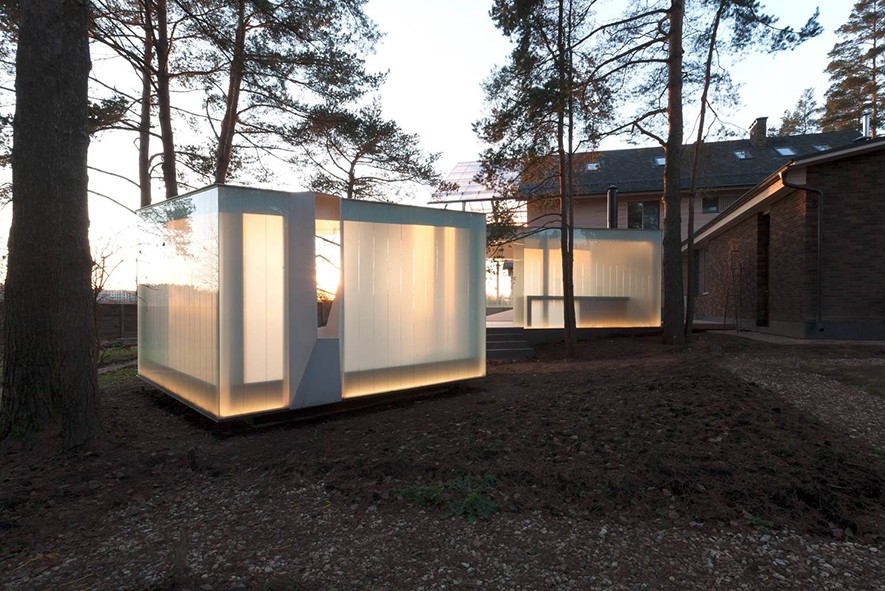 Düzensiz konumdaki çam ağaçlarının etkisiyle tasarım planlaması karmaşık bir zemine oturtuldu. Karanlıkta led aydınlatması sayesinde özel bir nesne izlenimi yaratan gazebo tarihi ağaçlar arasında parlayan merak uyandırıcı görünüme sahip oluyor.