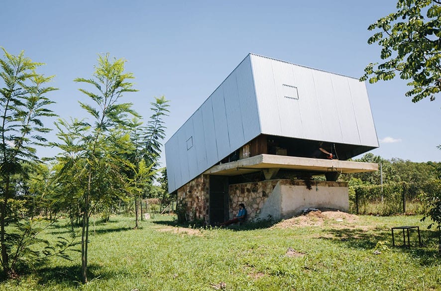 Javier Corvalán ve Laboratorio de Arquitectura geliştirilen Caja Obscura projesinde ev, bağımsız iki alandan oluşuyor. Aşağıda taş ve topraktan yapılmış oturulabilir temel bir yapı. Üstte neredeyse tamamen kapalı hafif metalik bir kutu. Üstteki kutu manzara ya da rüzgârı engellemeksizin 25 dereceye kadar dönen hacme imkan veren orta noktasından hafifçe yer değiştiren bir aks ile kalın bir levha üzerinde dönüyor.