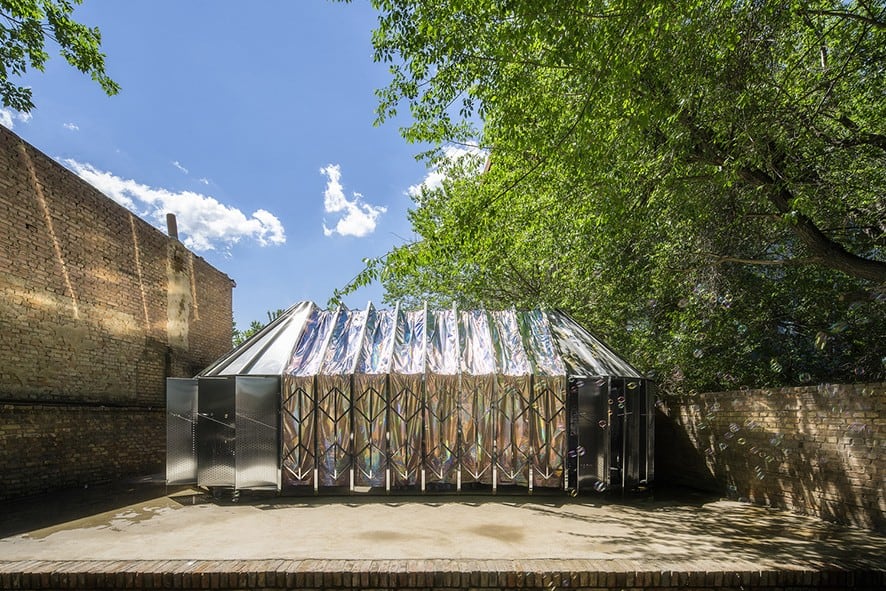 New York’ta Diller Scofidio + Renfro’nun yerel ofisi High Line Park’ın yanında hareket edebilen dış kabuğuyla The Shed Art Center’ı tasarladı. Bina kapsamlı ve büyük performans, enstalasyon ve etkinlikler için ikonik bir alan ve dış kapak bitişikteki meydana doğru raylar boyunca kaydığında kurulur. 37 metre olan mobil çatı bir önceki projede olduğu gibi aynı ETFE ve açık çelik bir yapı ile yapılmıştır.