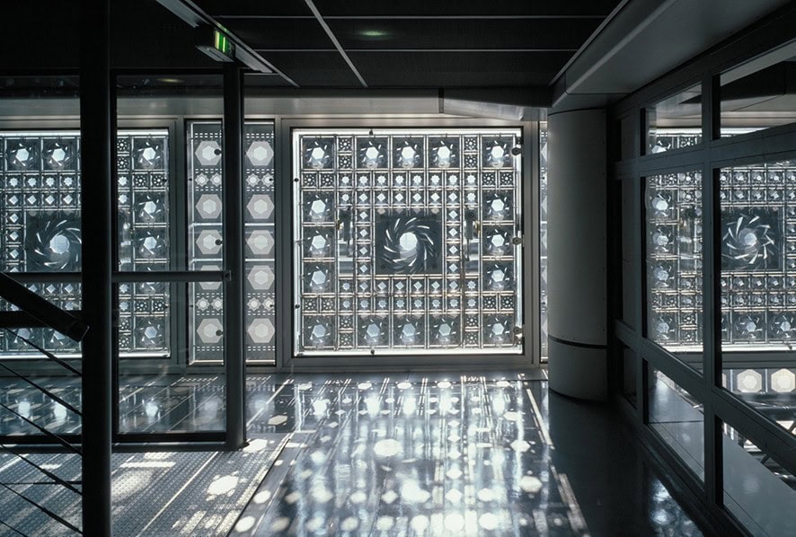 Dinamik öğeler yapının kendisinin küçük ya da hatta büyük bölümlerinin hareketi aracılığıyla mekânsal değişikliklere imkân sağlıyor. Sıklıkla hareketli mimariden bahsettiğimizde solar korumalar akla gelebilir: örneğin 1987 yılında the Institut du Monde Arabe’da Jean Nouvel, binanın güney cephesine kameralara benzeyen 27.000 diyafram ve sensörler aracılığı ile binaya giren ışık miktarını düzenleyen 240 adet ışığa duyarlı panel kurdu. Eş zamanlı olarak analog olan ve ileri teknolojiye sahip yapı sadece dikkat çekmekle kalmayıp kültürel değerleri de koruyan bir gölgelik efekti oluşturarak Arap motiflerine ve Mashrabiyas’a da atıfta bulunuyor.