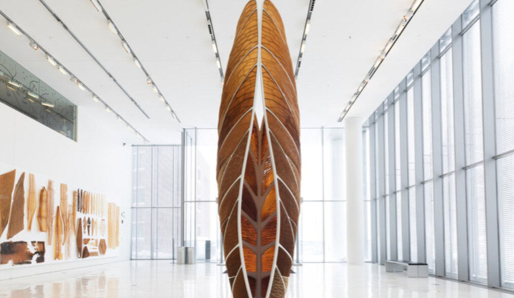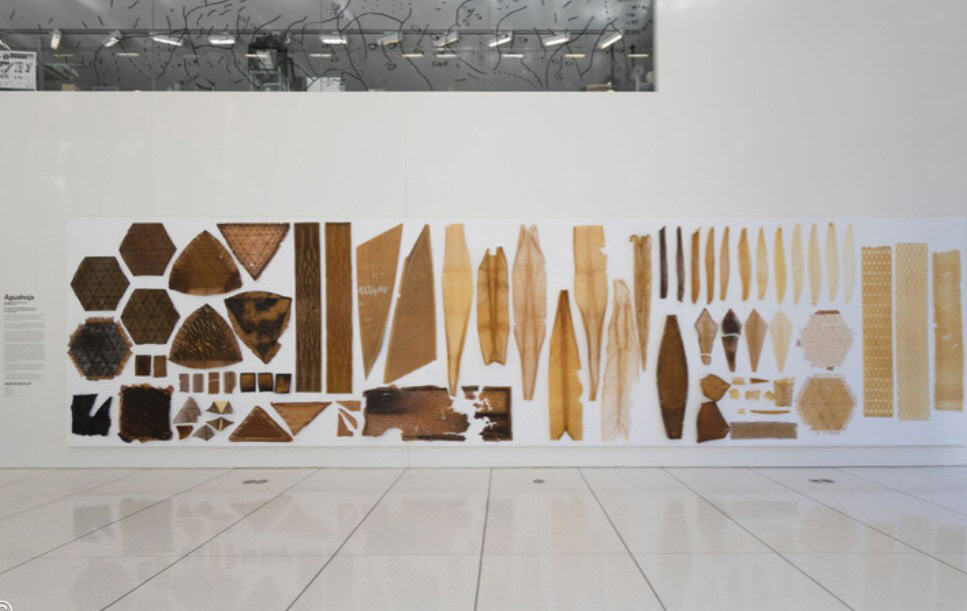 Neri Oxman ve MIT, dijital tasarım ve üretim için programlanabilir su bazlı bir biyokompozit geliştirdi. Aguahoja adlı proje, ağaç dallarında, böcek dış iskeletlerinde ve insan kemiklerinde bulunan moleküler bileşenlerden oluşan hem bir pavyon hem de bir dizi eseri sergiliyor. Sıfır atık malzeme üretim süreci oluşturmak için doğal ekosistemleri ilham kaynağı olarak kullanıyor.