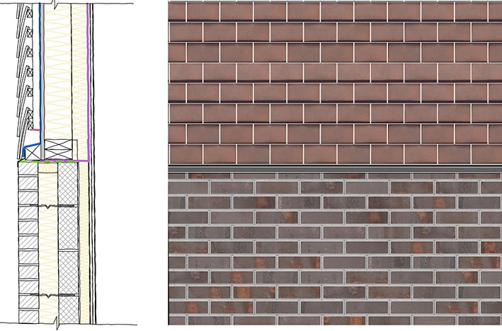 Tuğla duvar ile havalandırmalı cephe kaplaması arasındaki malzeme geçişlerini detaylandırırken kullanılan bu yöntem, mimarlar arasında kullanılan en popüler seçeneklerden biridir. Ancak doğru şekilde yapılması da en zor olanlardan biridir. Bunun nedeni, farklı dış malzemeler, farklı yapı ve inşa tekniklerine gereksinim duyar.