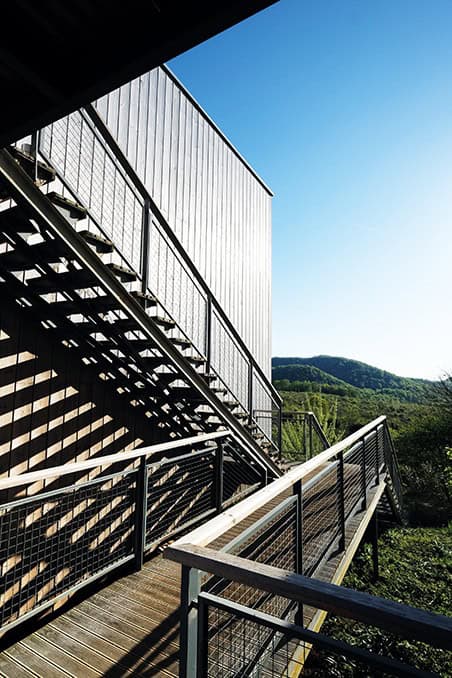 Kişinin yerleşke içindeki hareketi sırasındaki her anı çevre ormana, ağaçlara, toprağa, gökyüzüne karşı farkındalık yaratacak perspektiflerden oluşmakta. Yürüyüş alanları ahşap kazıklar üzerinde zeminle en az temas ederek toprağın işleyişine müdahale etmemekte. Bu yollar zaman zaman meydanlar, dinlenme alanları oluşturur. Devamında aynı dolaşım tipolojisi yapılar arasında üç boyutlu geçişlere dönüşürler ve odalara girişler buralardan sağlanır.
