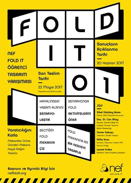 “Yaratıcılığını Katla. Mekandan Ürüne, Üründen Mekana Hayal Ettiğini Tasarla” konusu ile düzenlenen yarışmada, katılımcılardan, hayallerindeki yaşam alanını senaryolaştırmaları, senaryolarında FOLD aktiviteleri önermeleri, önerdikleri kurgu içinden seçtikleri FOLD’u çizmeleri ve FOLD mekanına ait bir nesneyi tasarlamaları bekleniyor. Gençlerin iç mekân ve ürün tasarımında mimarlık, içmimarlık, endüstriyel tasarım disiplinlerinden olmak üzere disiplinlerarası bir çalışma pratiği içinde birlikte çalışmalarının teşvik edildiği yarışmada, ulaşılabilir, ekonomik ve sürdürülebilir tasarımlar ve çözümlemeler ödüllendirilecek. Mimarlık, Güzel Sanatlar, Sanat ve Tasarım Fakülteleri’nde 2016 – 2017 Bahar Yarıyılı itibariyle öğrenim gören lisans ve yüksek lisans öğrencileri arasında düzenlenen yarışmaya başvurular, 22 Mayıs’a kadar devam edecek. Sonuçlar ise 20 Haziran’da açıklanacak. Yarışmanın birincisi 5.000 TL, ikincisi 3.500 TL ve üçüncüsü 2. 500 TL ödülün sahibi olacak. Birincilik ödülü alan proje, NEF ile birlikte geliştirilebilecek ve NEF’in FOLD konsepti içine dahil edilecek.