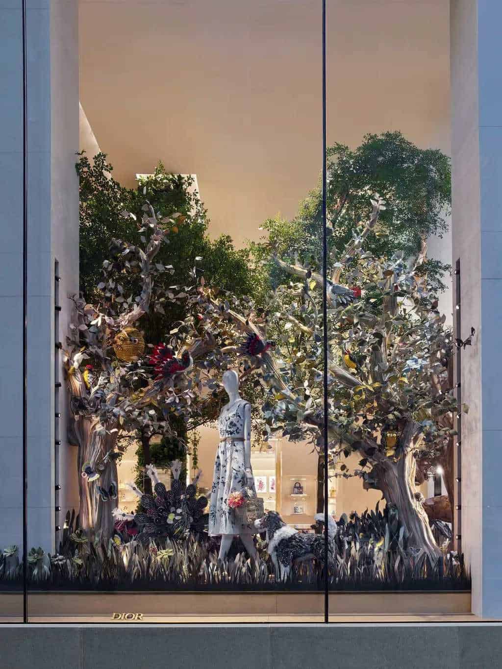 Modern ve zarif bir tasarıma sahip olan yapı, beyaz taş cephe ve tavandan tabana cam paneller eşliğinde doğal ışıkla aydınlatılmış. Mağazada bulunan Dior’un imza vitrinlerinden biri, Belçikalı peyzaj tasarımcısı Peter Wirtz tarafından yaratılan ekolojik bahçe tasarımı. Tasarımda yeşillikler ve geri dönüştürülmüş malzemeler kullanılarak Christian Dior’un doğaya olan sevgisi vurgulanmış. Gerçekten göz alıcı!..