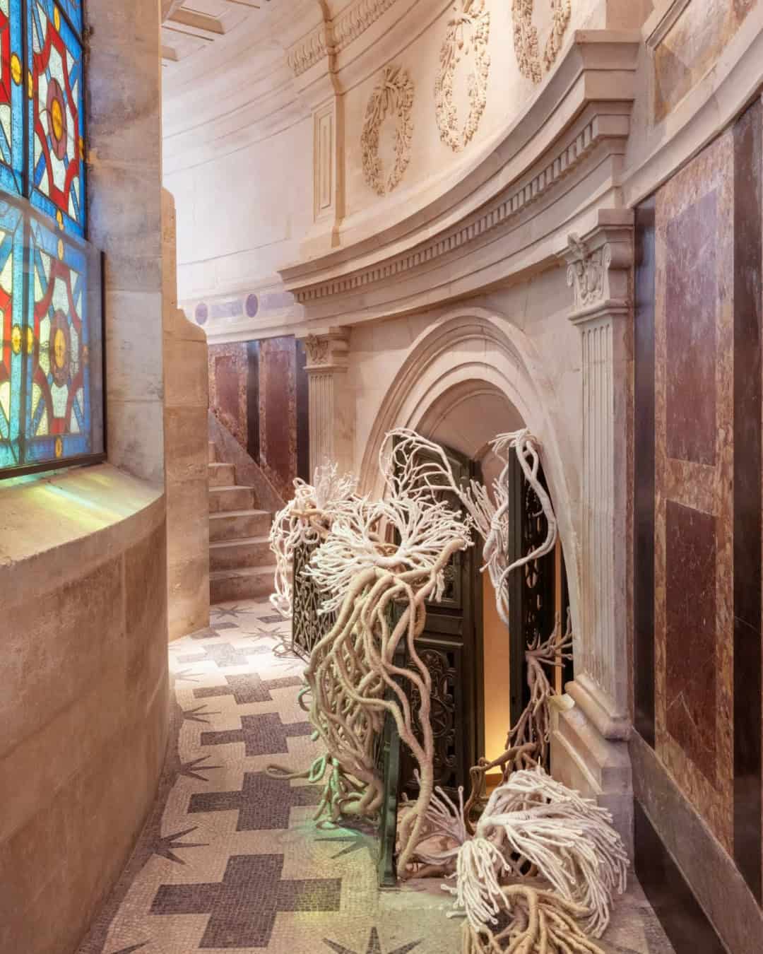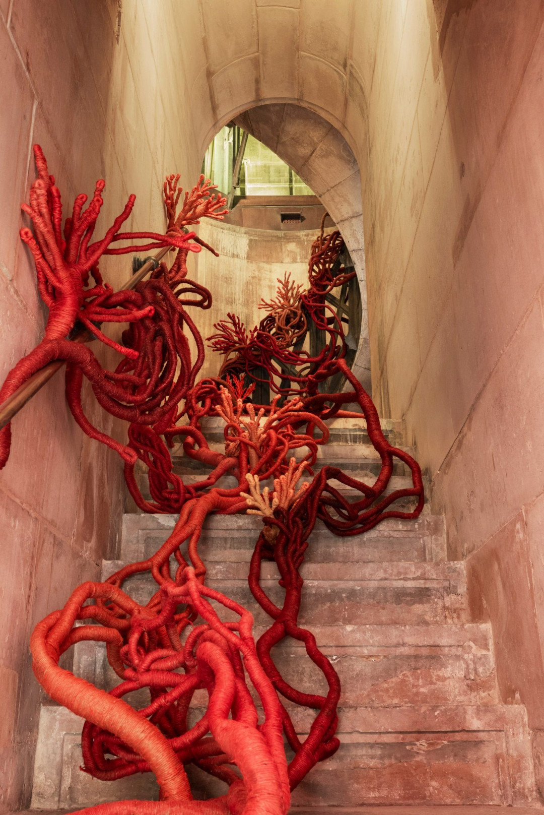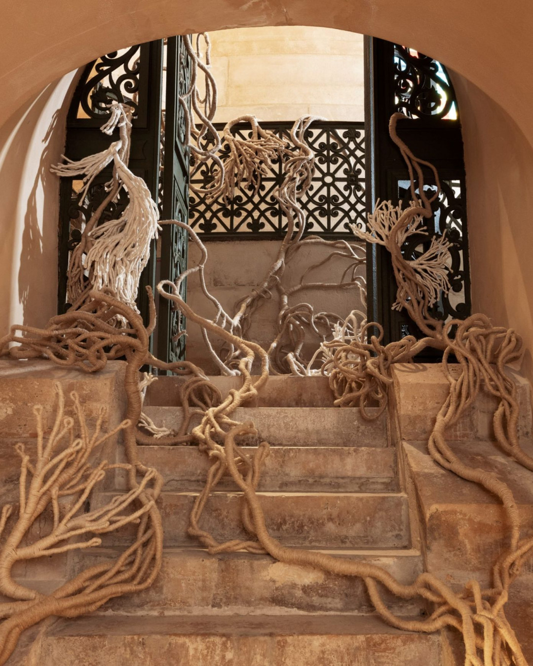 Aude Franjou’nun kariyerinde tekstil hemen her zaman öne çıkan bir unsur aslında. Franjou, geleneksel dokuma tekniklerini heykelsi formlarla birleştirerek kumaşı adeta mimari bir malzeme gibi kullanıyor. “Corals of Liberty” çalışması da bu yaklaşımın bir yansıması niteliğinde.
