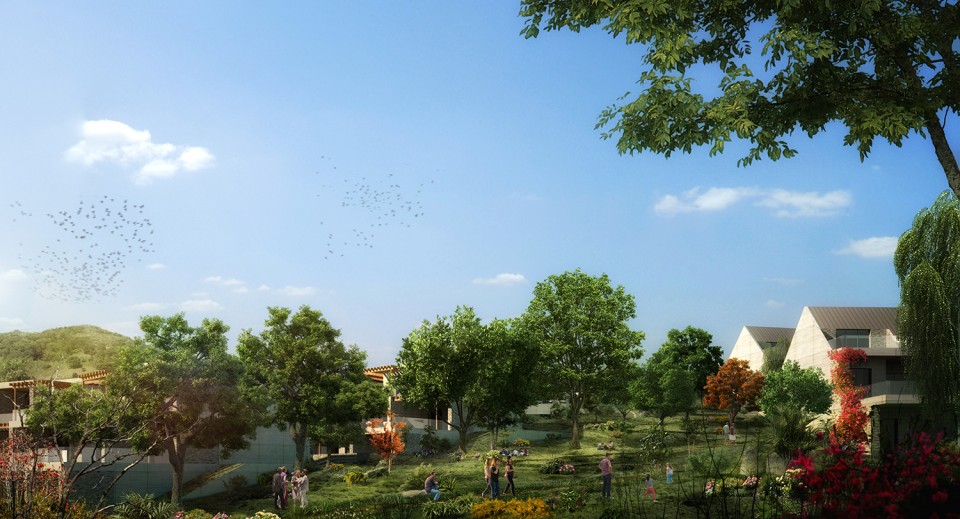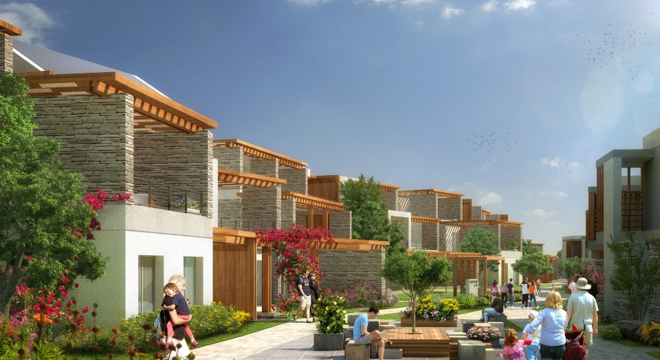 Arazideki mevcut yeşil doku korunarak buna ilave edilen yeşil bantlarla yapı kompleksinin doğal bir atmosfer içinde kaybolmasını sağlayan mimarlar, yeşil dokunun kamusal alan niteliğini ön planda tutarak sokakları taşıt trafiğine kontrollü olarak kapatmış ve her sokağı kullanıcıların yol sonunda adeta küçük bir orman ile karşılaştıklarını hissetmeleri için bu yeşil bantlarla buluşturmuş. Arazide oluşturulan yeşil kurguya eklemlenecek proje birimleri bazen yeşille temas ettirilirken bazen de kendini çevrelemesine müsaade eden bir tavırla tasarlanmış. Konut birimleri arazinin yüksek yamaçlarında manzaraya yönlendirilmiş, eğimin azaldığı yerlerde ise oteller konumlandırılmış.