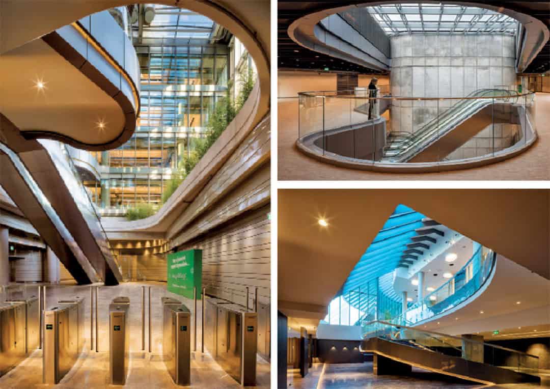 Bu peyzaj tepelerinin altında; oditoryum, data merkezi, kafe – restoran, arşiv, servis birimleri vb. özel işlev ve rekreasyon alanları yer almaktadır. Ofis çalışma alanları dışındaki tüm özel işlevler zemin ve alt katlarda yerleşmiş olduğundan ofis katları gökyüzüne ve peyzaja açılan avlular çevresinde birbirleri ile bağlantılı olarak yerleştirilmiştir.
