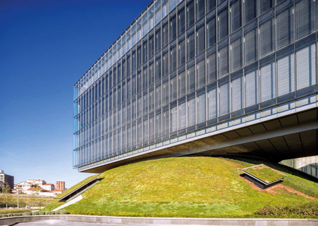 Dalgalı yatay bina, sahanın iki kısmını asma köprüler ve genişliği otuz metreyi aşan cam duvarlarla birbirine bağlamaktadır. Ofislerde düz beton sistemi, daha alt katlardaysa çıplak iskelet sistemi kullanılmıştır. 4.5-11 metre derinliğinde sundurmalar sayesinde ofis alanlarında sütun kullanılmasına gerek kalmamıştır. Her dört ofisin seviyesi de aynı düzeydedir ve en geniş sundurmalı alanlar, çatıya yerleştirilen büyük, kompozit kirişlerle desteklenmektedir.