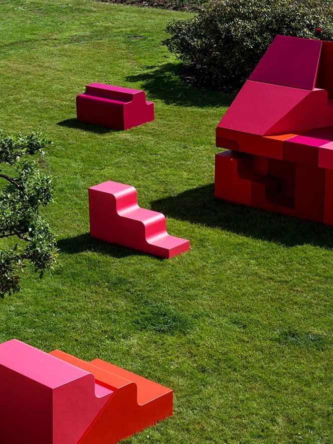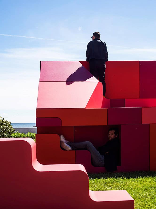 Yapı pembe, kırmızı ve fuşya renkli geometrik bloklardan oluşuyor; bu bloklar yap-boz parçaları gibi yerlerine yerleştirildiklerinde, ortaya ufak, kalkan duvarlı bir ev  çıkıyor.