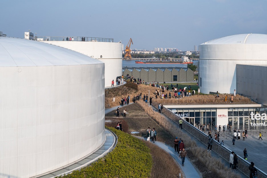 Şangay’daki eski Longhua havaalanındaki beş havacılık yakıt kabı, yerel stüdyo Open Architecture tarafından, Şanghay sanat ve kültür parkı Tank Şanghay’a dönüştürüldü.
