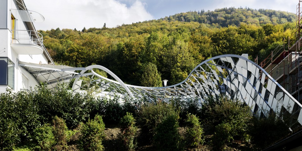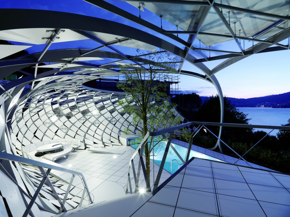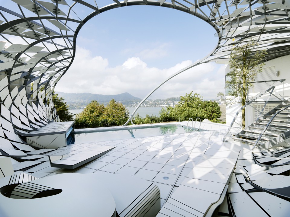 Viyana’lı mimarlık ofis heri&salli, Avusturya’da özel bir mülk sahibi için bahçesindeki yüzme havuzunun etrafında kozayı andıran çelik bir yapı tasarladı. Monte edilmiş paneller ile iç yapılar arasına parametrik bir mekânsal eleman olarak tasarlanan yapı deneyimlenebilir yüzey olanaklarını tanımlayan niteliğe sahip.