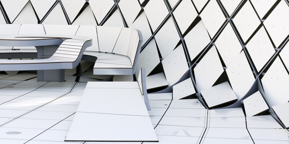 Çizgilerde eğrilerin yoğun olarak kullanılmasının diğer bir nedeni ise mekanı olduğundan daha büyük kılarak daha fazla konstrüksiyonları kapsayabilecek olması. Öyle ki merdiven ve oturma birimi gibi farklı entegre yapılar ve sırtlıklı masalar ile bu çelik yapı geometrik bir şekilde ilişkisini tamamlayabilmektedir. Bu durumda mimari, tanımlanmış bir alanda yapılabilecek tüm olasılıkların birikimini bahçeye lanse etmektedir.