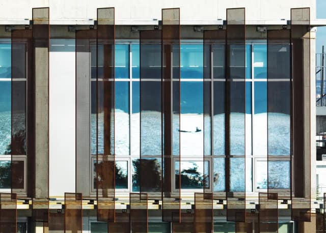 Güneye bakan bloklarda güneş ışığının ultraviyole ışınlarını kontrol etmek, iç mekandaki mekanik soğutma yüklerini düşürmek ve mahremiyeti sağlamak amacıyla içinde cıva olmayan, %100 dönüşümlü, gemi gövdelerinin üretiminde de kullanılan korten saç levhalar ile perfore panel cephe sistemi tasarlandı.