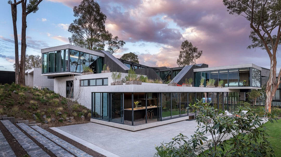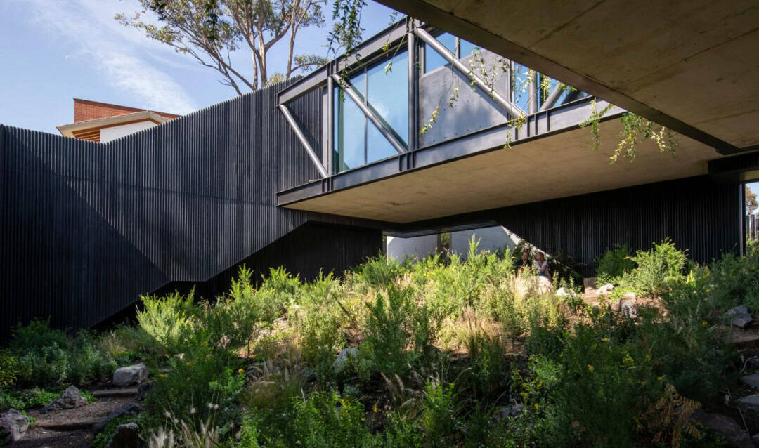 Aslında düzenleme, zemin kat ile zemin kat yaşam alanlarını birbirine bağlayan bir dizi köprü gibidir. Pereira ayrıca yükseltilmiş yürüme yolunun büyük bir kısmının arazinin eğimine uygun hale getirildiğine dikkat çekti. Etki, malzeme seçimi ile vurgulanır. Yaşam alanı camlı açık plandır, ancak yürüyüş yolları bol miktarda yivli siyah betonla kaplanmış.Tavan pencereleri ışığın yapıya yukarıdan girmesine izin vererek içeride daha dinamik aydınlatma koşullarına izin verir ve üç merdiven onu bahçe seviyesine bağlıyor.