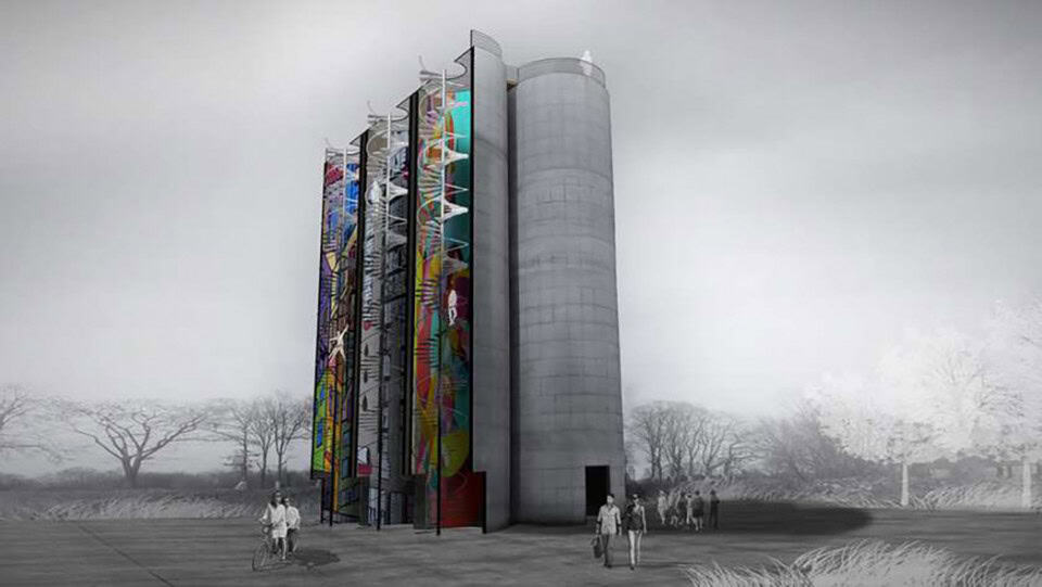 Kullanılmayan terk edilmiş , baca, inşaat siloları ve diğer dikey yapılar sanatsal gösterimler için özgün bir sunum ortamı sağlayabilir. Kamuya açık gösterimlerde renksel ve ışıksal etkilerle dikkat çekici bir arka plan sağlayabilir.