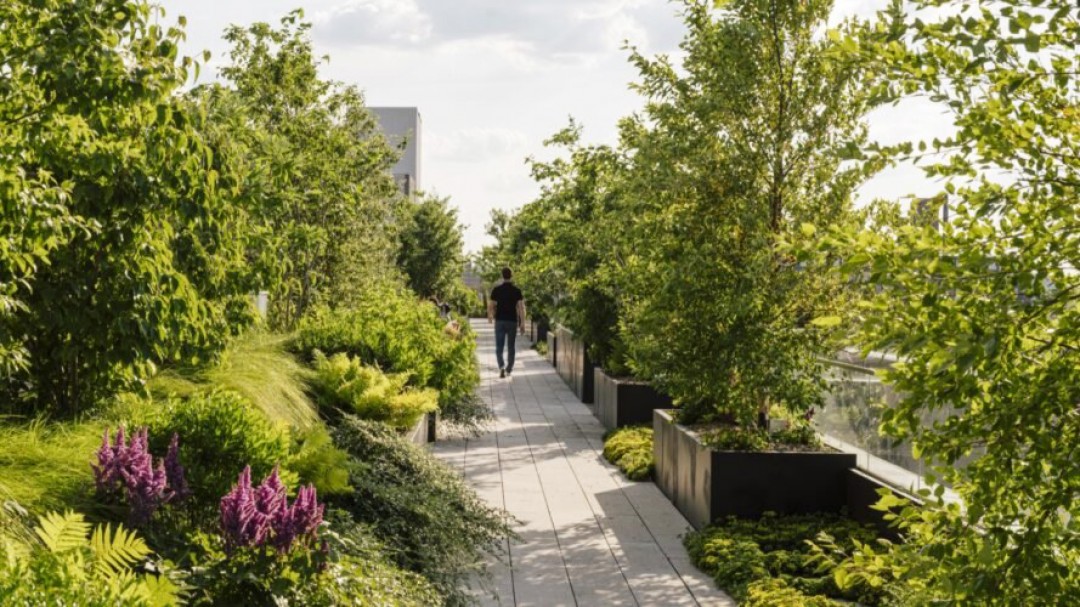 ODA New York, “şehir içinde şehir” yaratmak için, Denizen’in 17,850 metrekarelik alanını halka açık bir parkla iki bölüme ayırmış. Parklar, iç avlular ve 100,000 metrekarelik çatı bahçeleri ODA’nın peyzaj ekibi tarafından tasarlanmış. Çatı katında dört tane mutfağı olan bir yemek alanı, mini golf sahası, hamaklı bahçe, köpek parkı ve bina sakinlerinin ekip biçebileceği bahçeler var. Çatıya ayrıca 250’den fazla New York’a özel ağaç ve 1200’ün üzerinde kalıcı bitki dikilmiş.