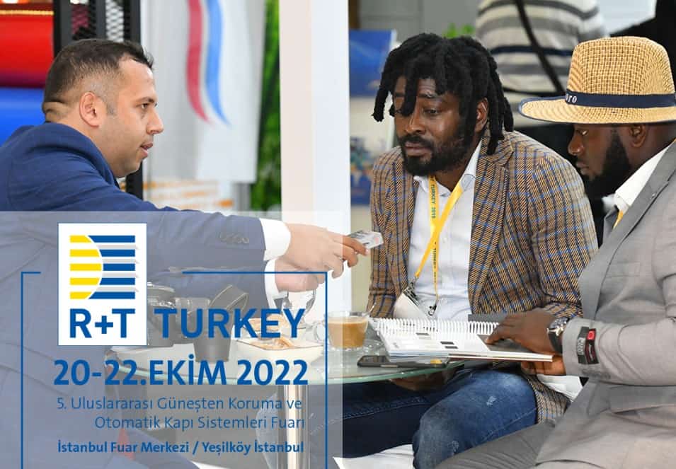 Güneşten koruma ve otomatik kapı sistemleri alanında Avrasya, Orta Doğu ve Kuzey Afrika’daki tek uluslararası ticaret fuarı 5. kez kapılarını açacak. Bu kapsamda, Messe Stuttgart Ares Fuarcılık tarafından düzenlenen Uluslararası Güneşten Koruma ve Otomatik Kapı Sistemleri Fuarı R+T Turkey, 20-22 Ekim 2022 tarihleri arasında İstanbul Fuar Merkezi’nde gerçekleştirilecek. Türkiye ekonomisi ve ihracatı için önemli bir kanal oluşturacak fuar; Yunanistan, İran, Bulgaristan, Sırbistan, Irak, Romanya, Rusya, Almanya, Fas başta olmak üzere 100’e yakın ülkeden ziyaretçi katılımı ile gerçekleşecek.